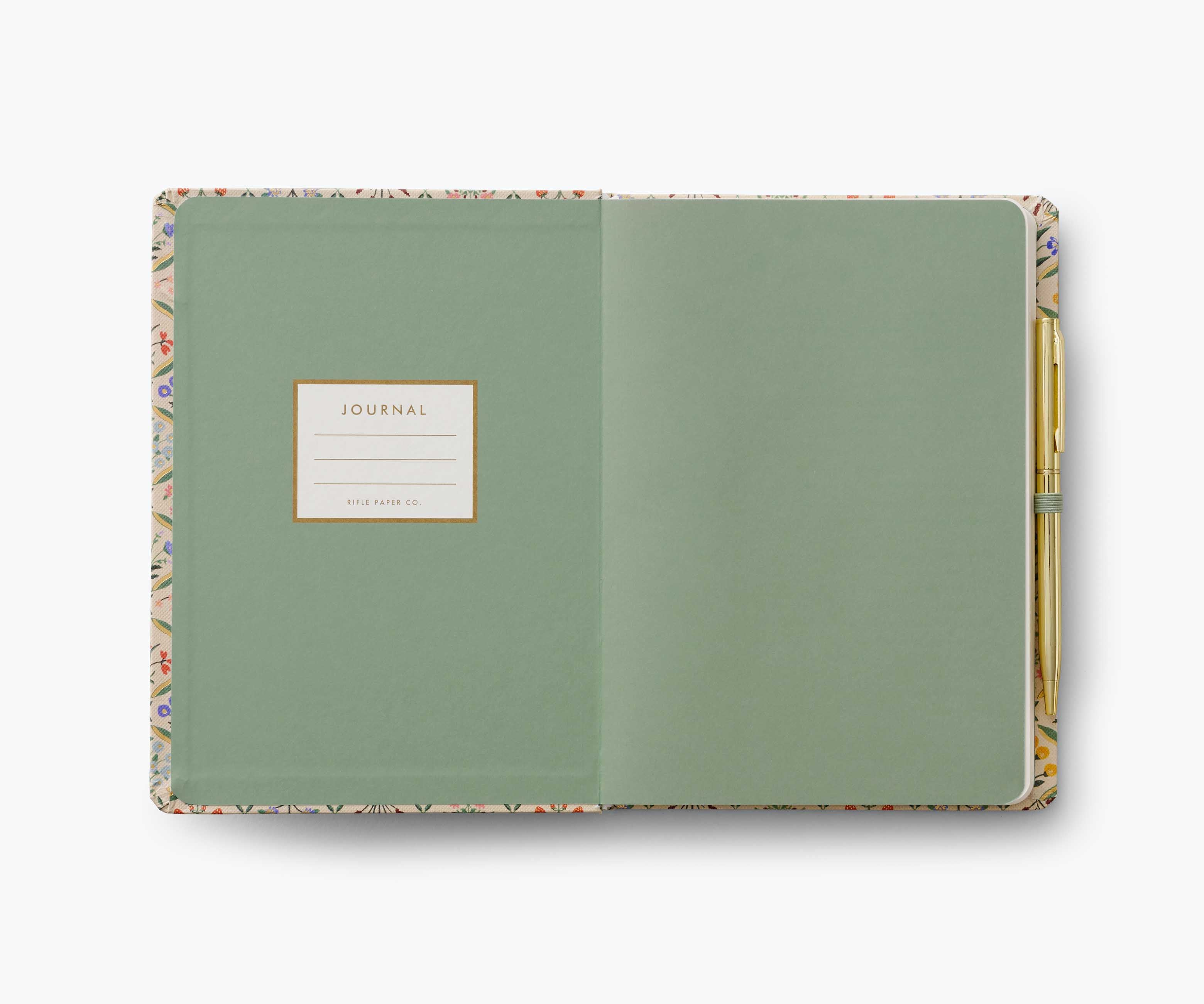 If you're looking for a journal with a pen, our hardcover options include a matching pen secured in an elastic loop, ruled pages, and built-in storage pockets.