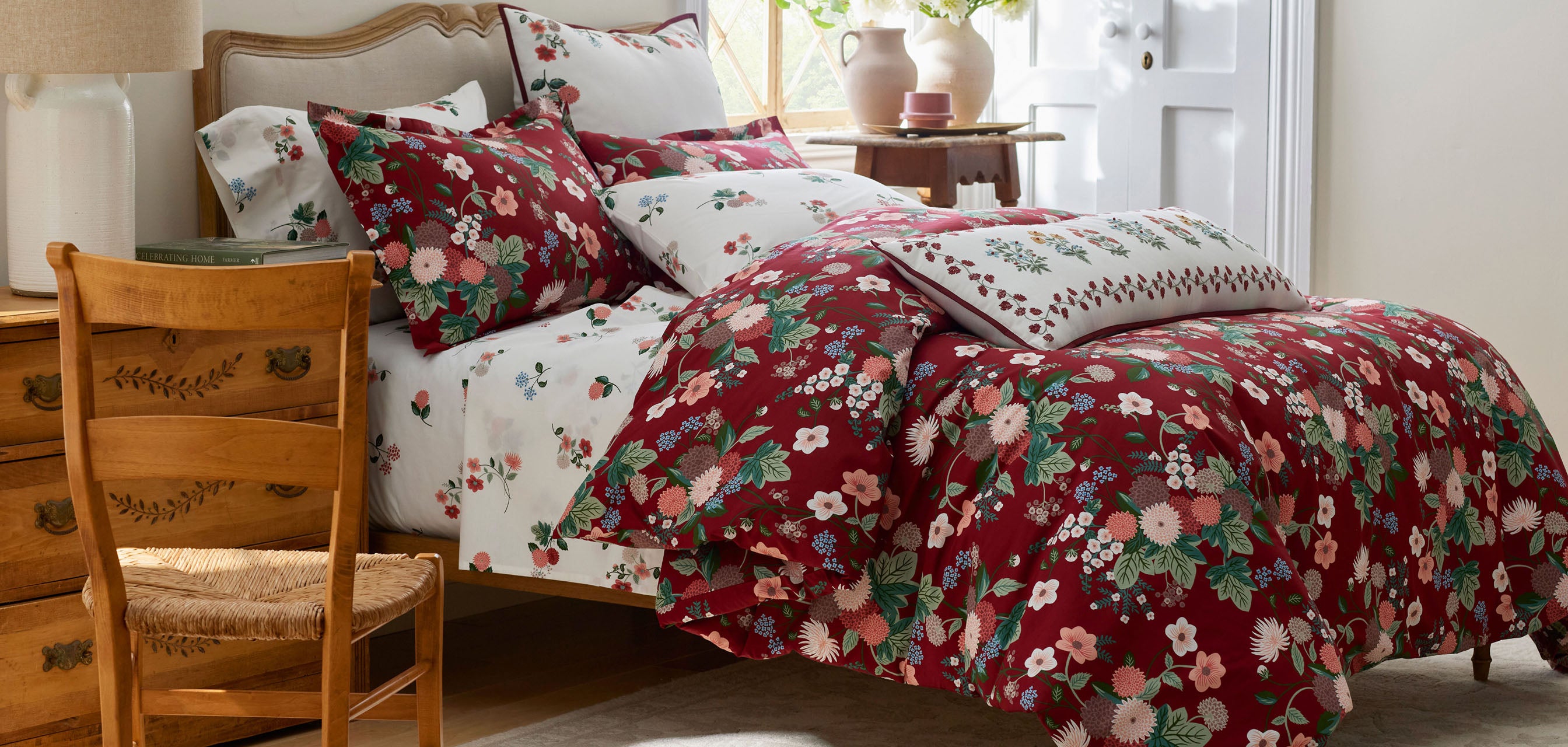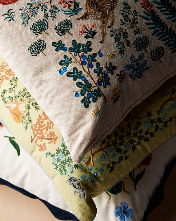 Created in partnership with Loloi, our exclusive rug collection pairs the brand's artisan construction with our signature florals and elegant color palettes. Also designed with Loloi, our embroidered pillows are perfect for mixing and matching, a charming addition to any space.