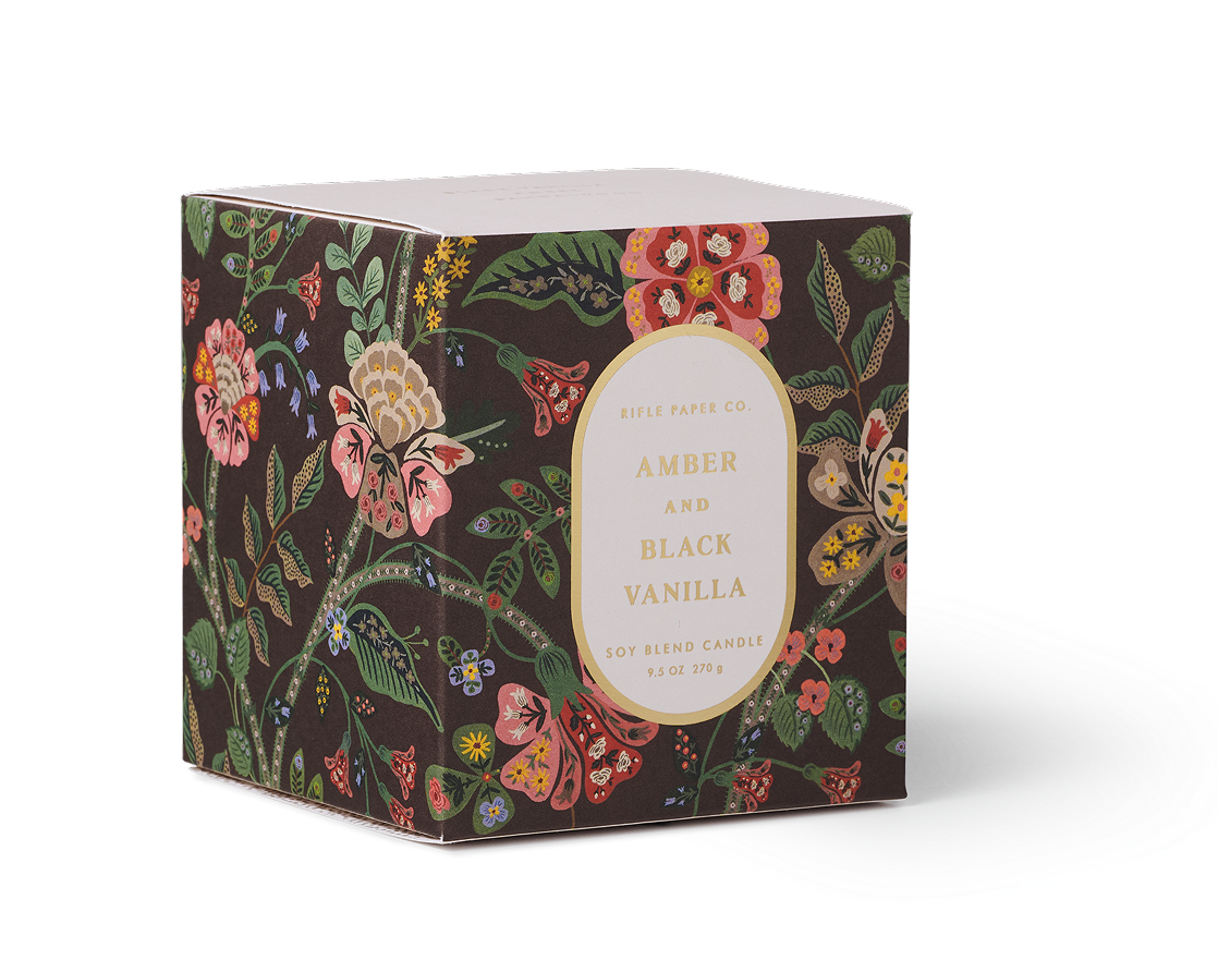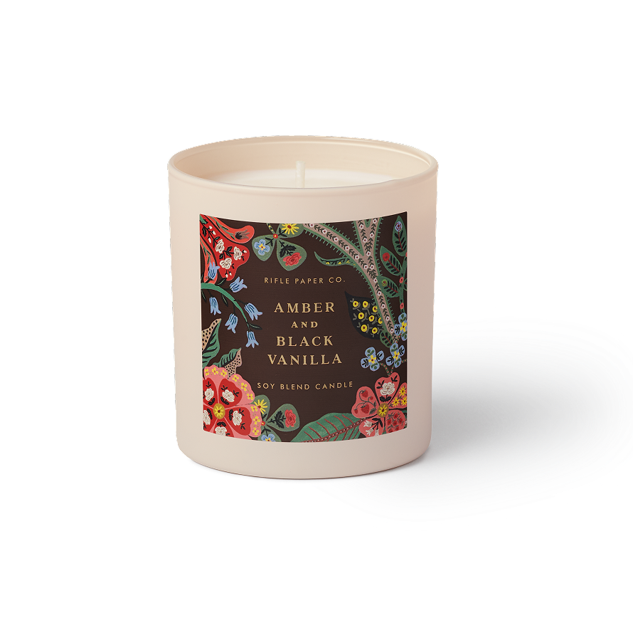 We worked with a custom candle maker to create lush, bespoke scents for our soy-based candles, completed with original artwork and a painted glass vessel.