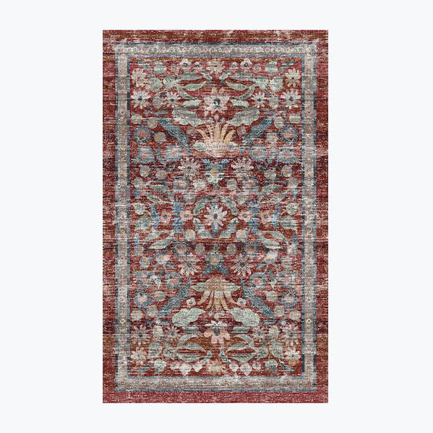 Courtyard Eve Printed Rug - Crimson