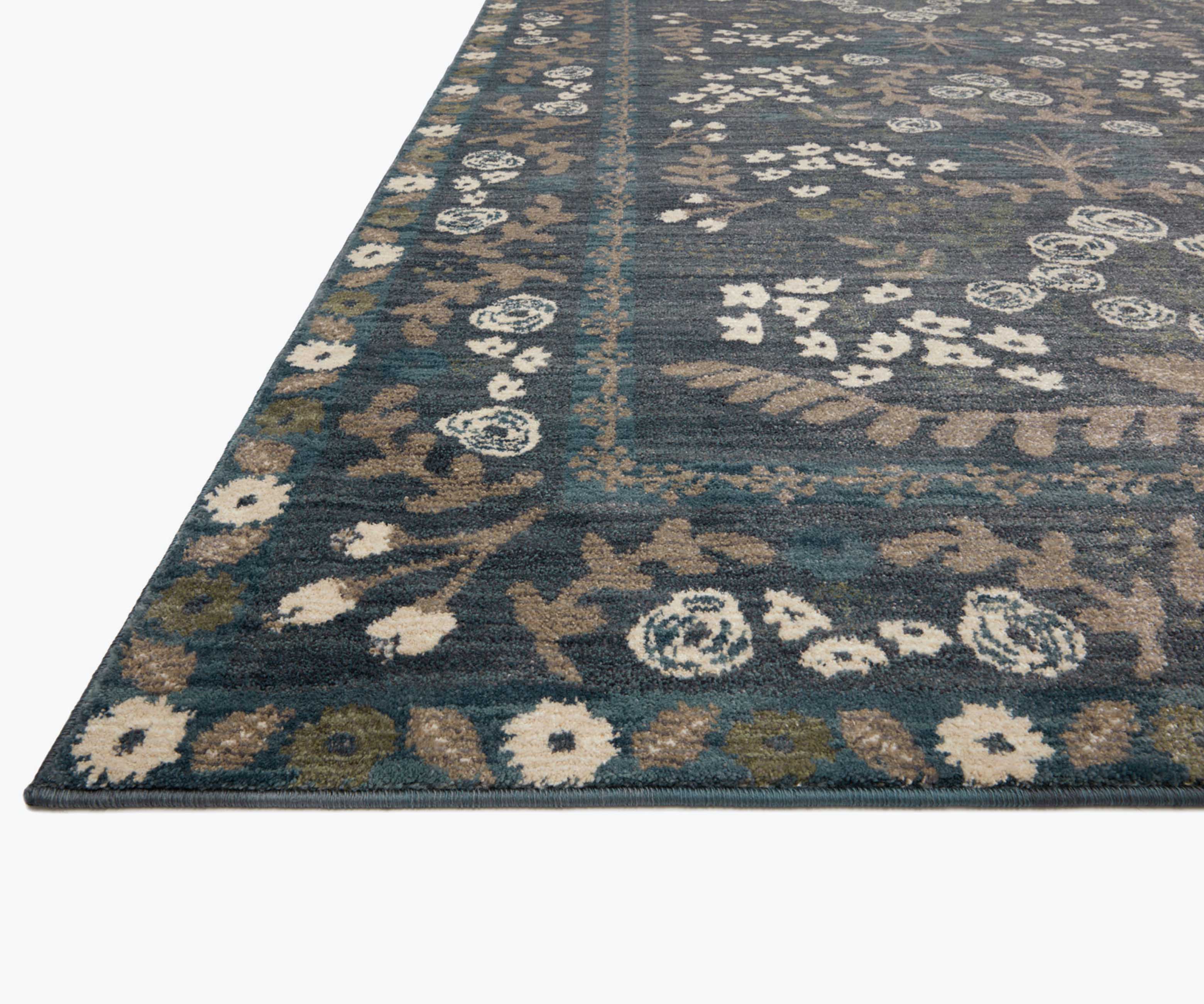 Normally I love rifle paper co and have even ordered multiple other rugs from them that I have been super pleased with. This made me feel confident in ordering this rug online even with the higher cost. I ordered the 'navy and gray' which in hindsight... the name is pretty accurate. However, the colors in the photos are extremely misleading. In the photos, it looks like a richly colored rug with teals/browns/greens. In reality it is a super dusty blue and gray basically. I do not like it and am grumpy that I don't really have an option to do anything about it. I also think the rug is priced a bit on the high side for a pretty basic rug quality. If the color had been right I would have been content but now I just feel ripped off. I hate that this will make me question ordering rugs from here in the future because I was super pleased with the others I ordered. Online shopping can really suck for big purchases like this. (note the colors in my photos are after trying to push the nap in the slightly better direction but that is not even the default direction of the fibers... so it is really even more off than the photos I attached seem)