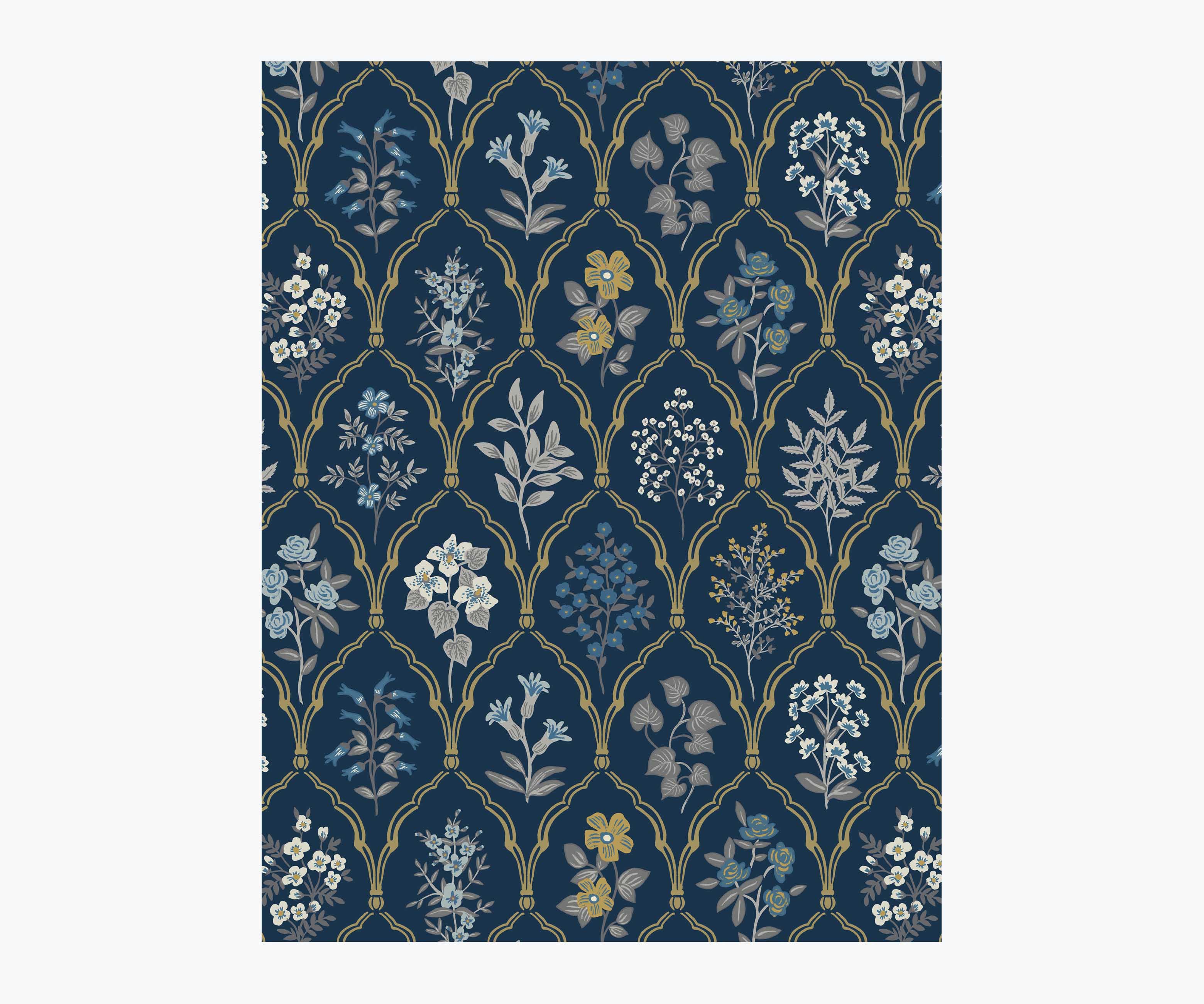 Hawthorne Wallpaper Sample - Navy & Gold