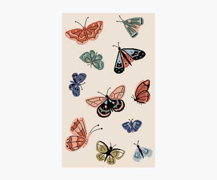 The butterflies are beautiful. The rug is well-made. The background color is a little too gray compared to other cream background colors in the room.
