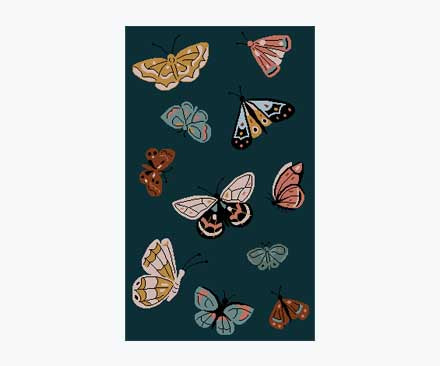 The butterflies are beautiful. The rug is well-made. The background color is a little too gray compared to other cream background colors in the room.