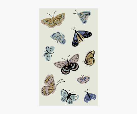 The butterflies are beautiful. The rug is well-made. The background color is a little too gray compared to other cream background colors in the room.