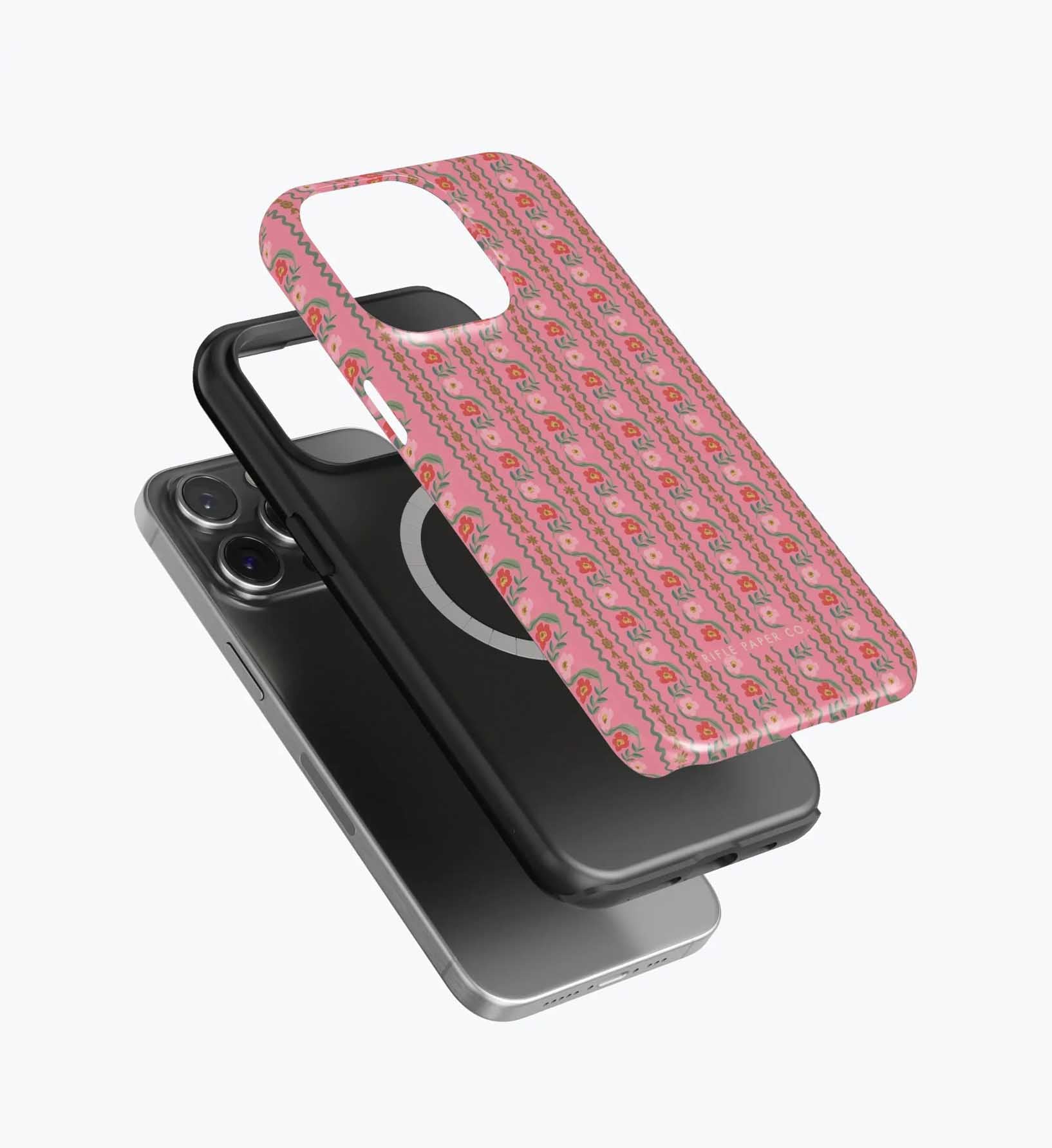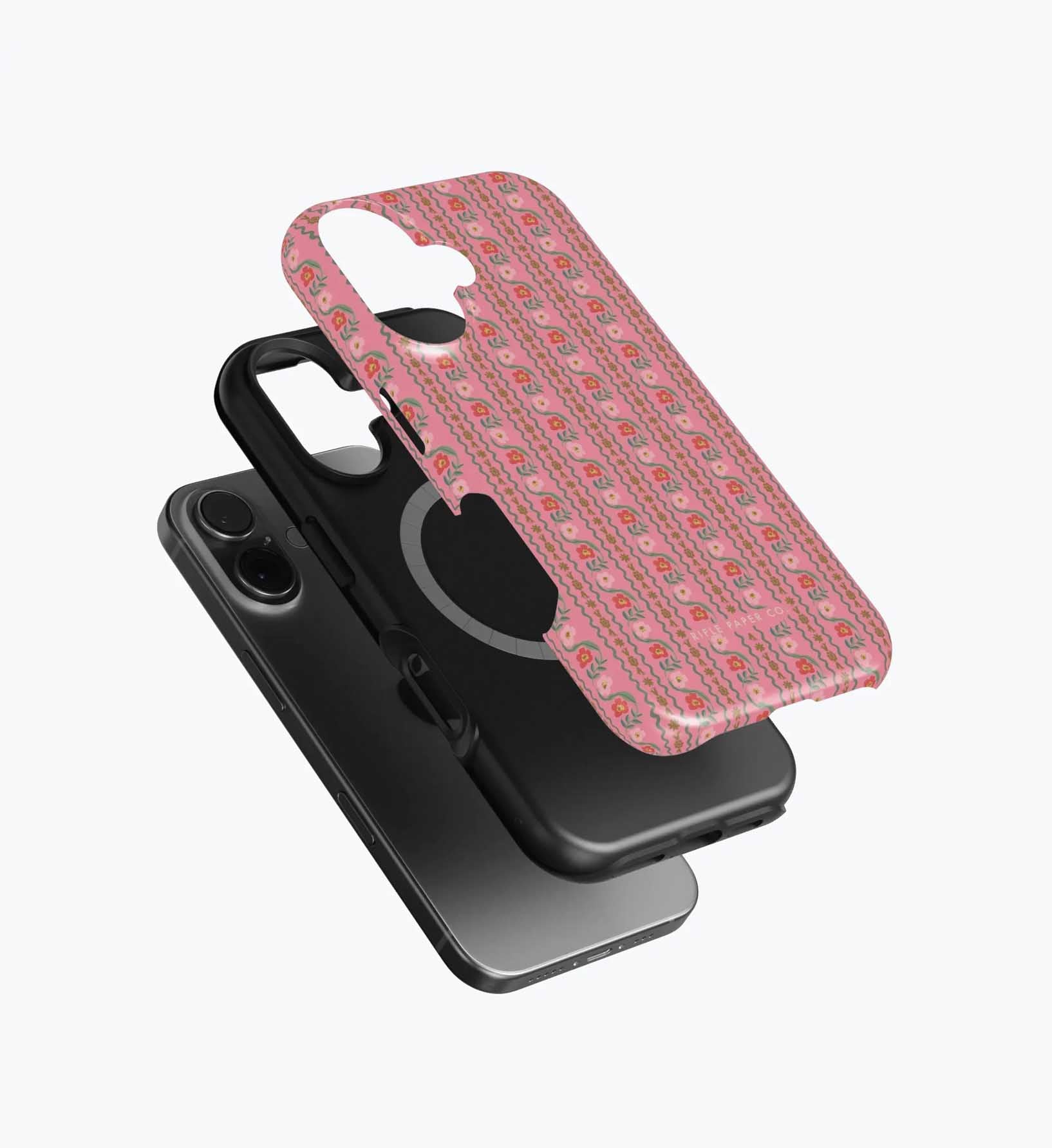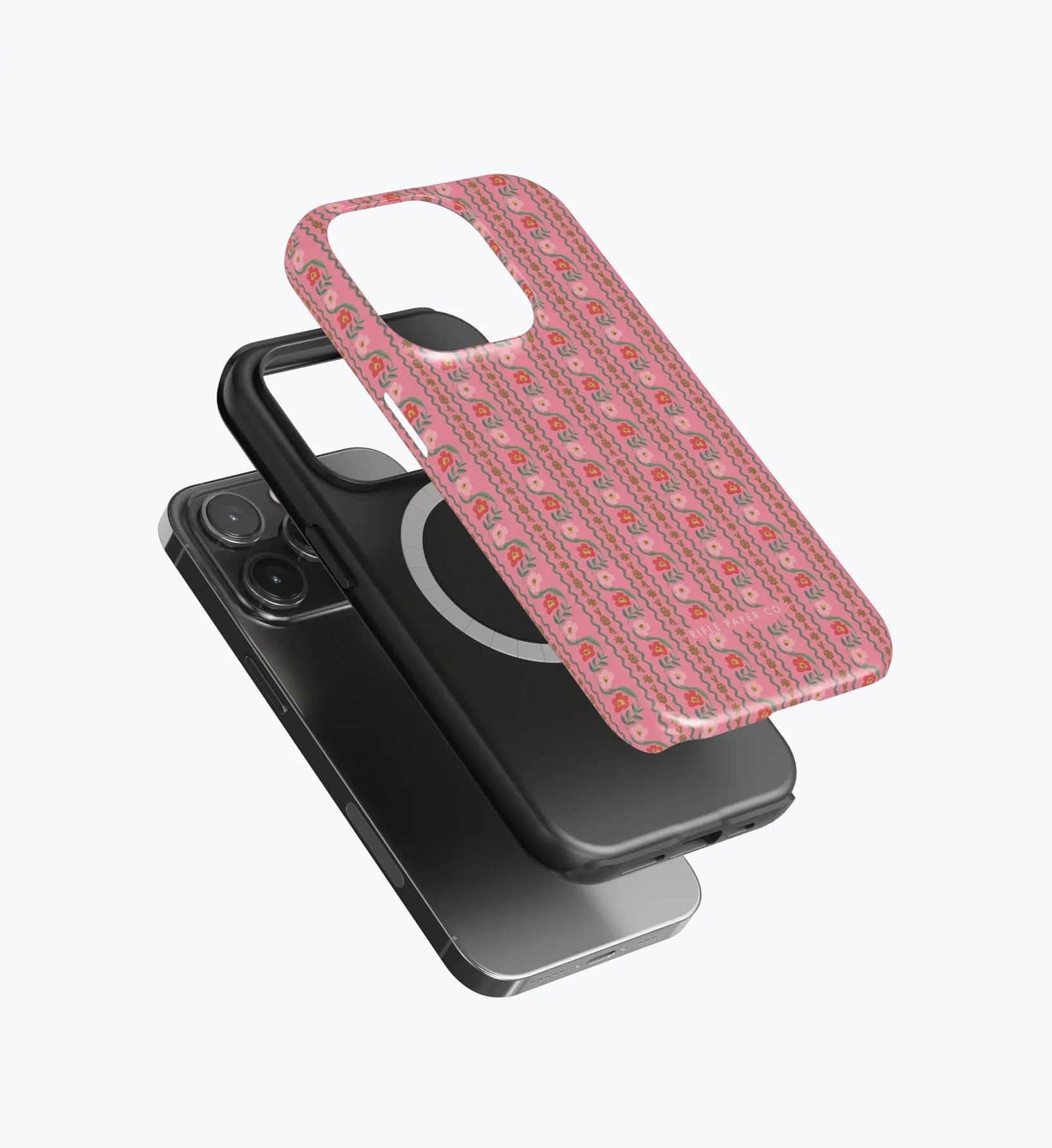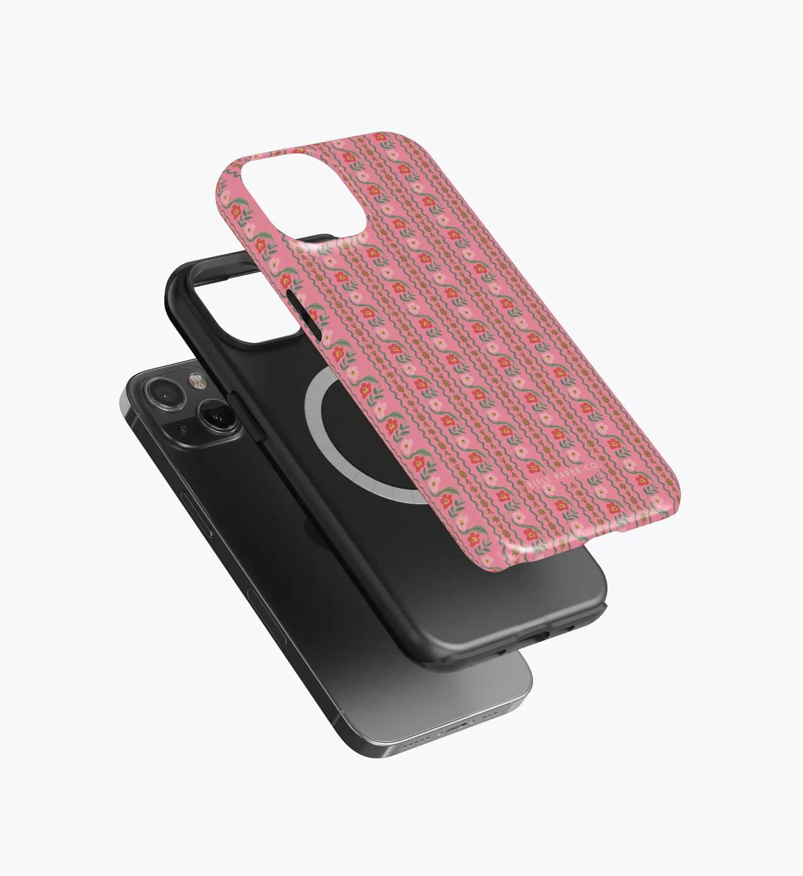 As a huge rifle paper co fan who has been buying their phone cases for 5+ years, I’m really disappointed with the design of these new cases. There is a black inner part of the case that contrasts terribly with the design and feels very cheap to me — like something I could have gotten for a 10th of the price on Amazon. It also results in a black outline on the front of the phone which I also don’t like. I am so bummed and will be returning. The quality of the case itself feels cheap and the pattern looks somewhat blurry/just printed on if that makes sense. So disappointed… this doesn’t live up to the quality of rifle paper co that I’m used to! I loved the print and was excited, but this will be going back :(