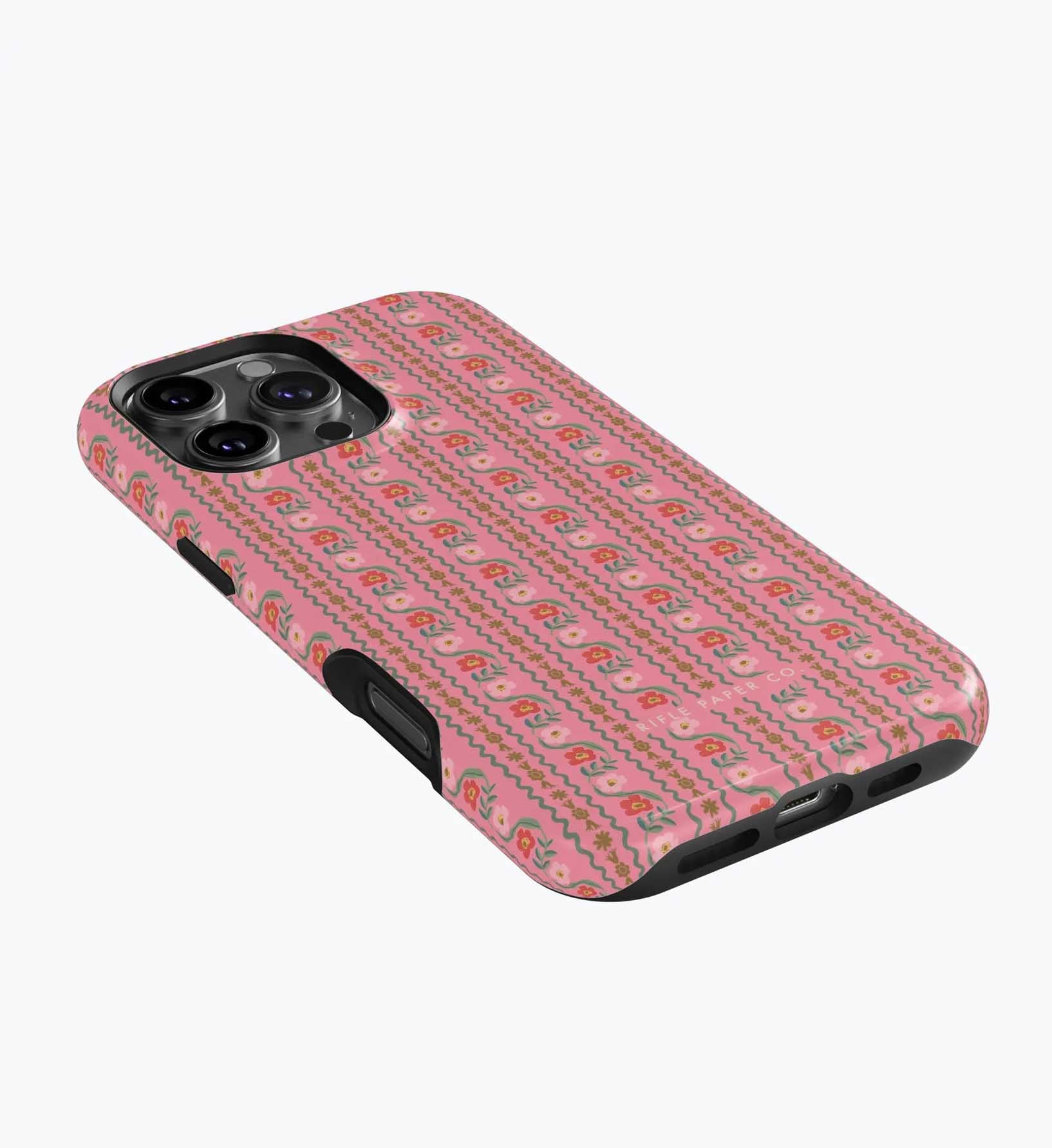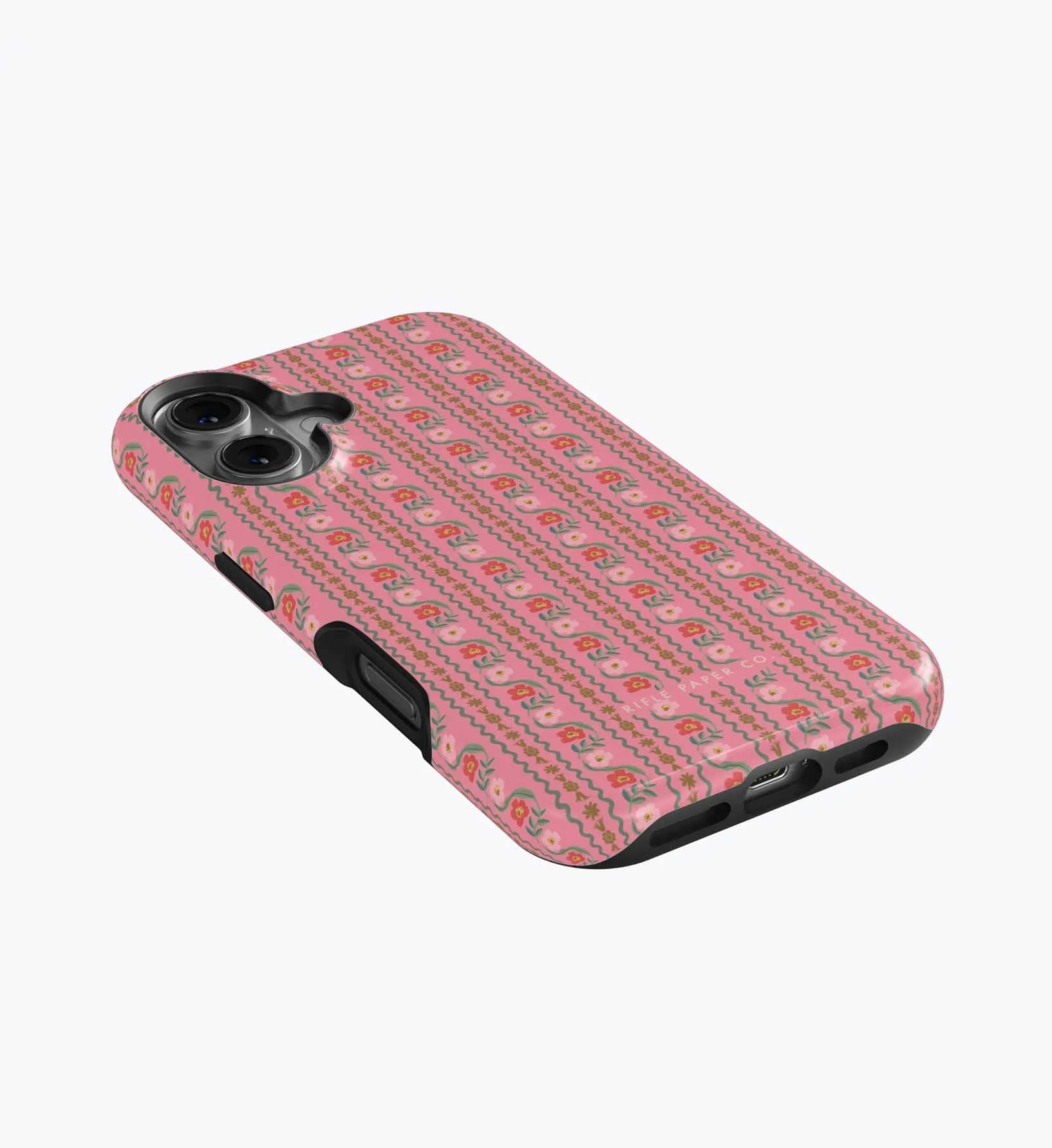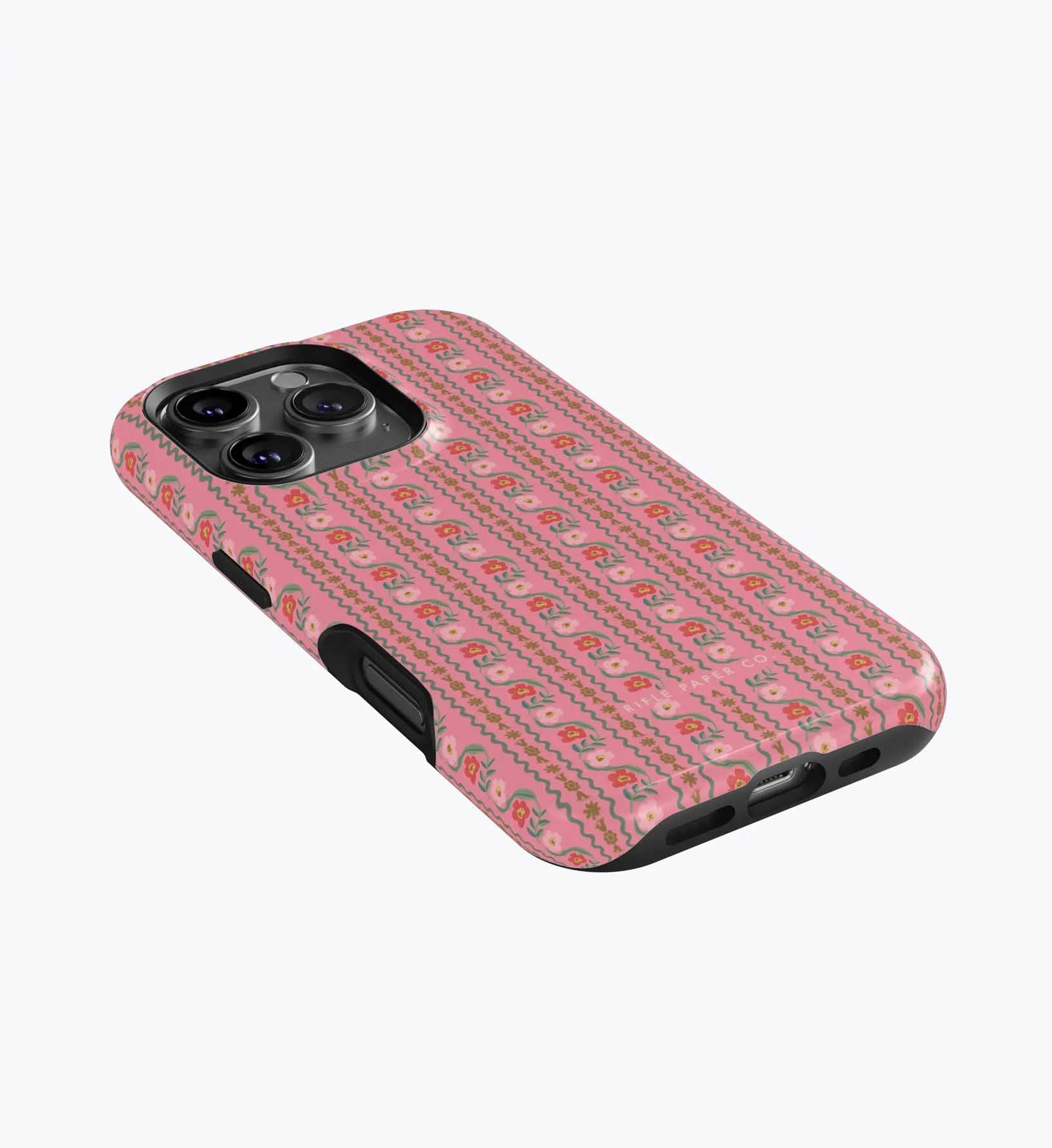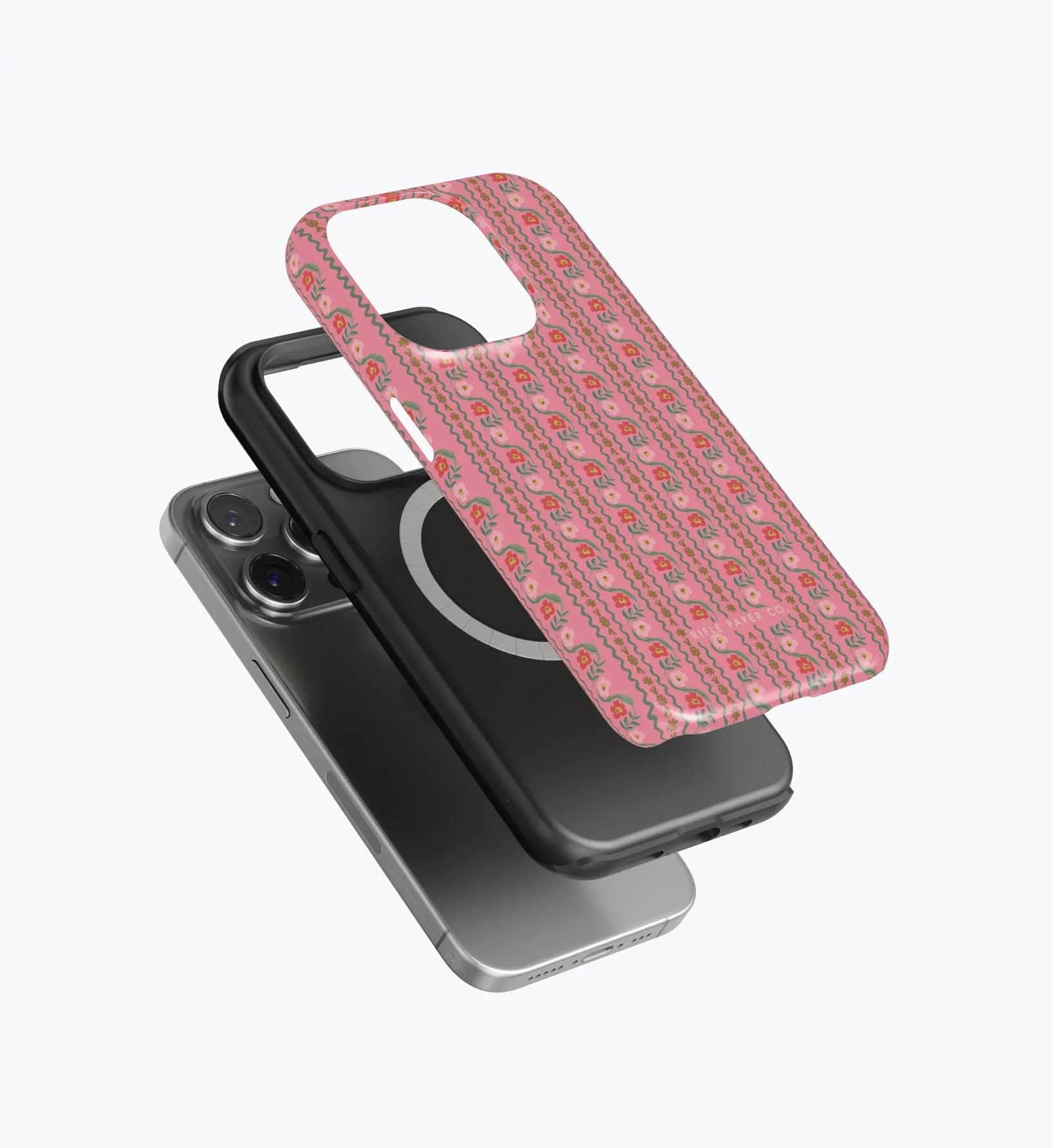 As a huge rifle paper co fan who has been buying their phone cases for 5+ years, I’m really disappointed with the design of these new cases. There is a black inner part of the case that contrasts terribly with the design and feels very cheap to me — like something I could have gotten for a 10th of the price on Amazon. It also results in a black outline on the front of the phone which I also don’t like. I am so bummed and will be returning. The quality of the case itself feels cheap and the pattern looks somewhat blurry/just printed on if that makes sense. So disappointed… this doesn’t live up to the quality of rifle paper co that I’m used to! I loved the print and was excited, but this will be going back :(