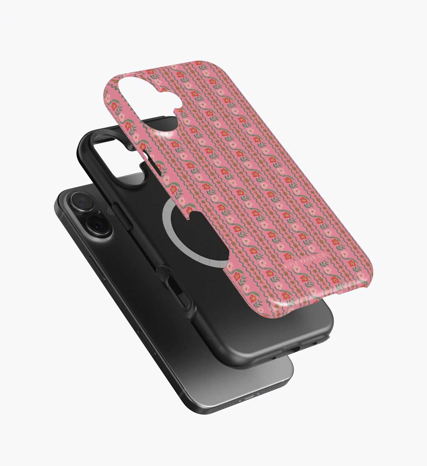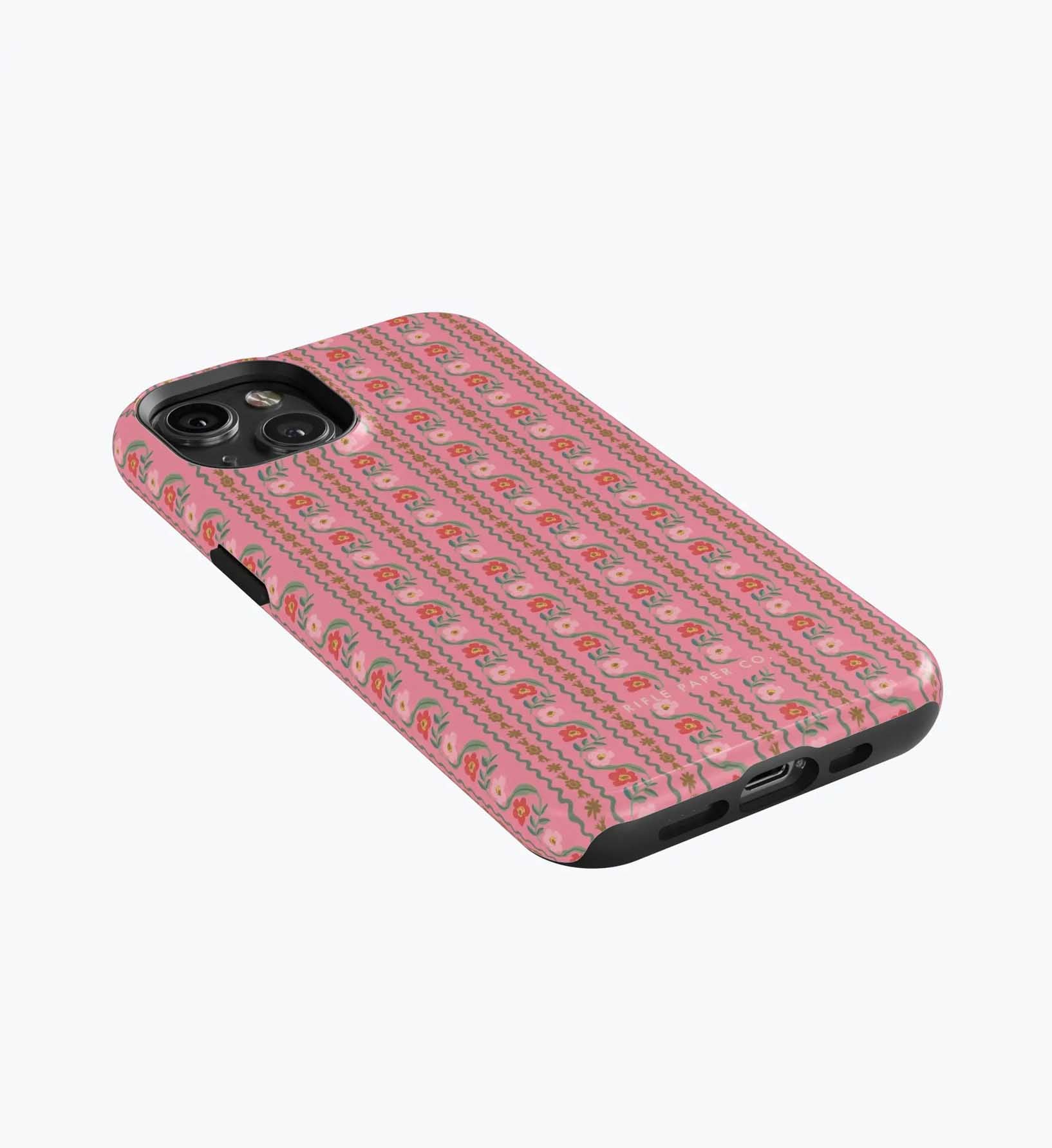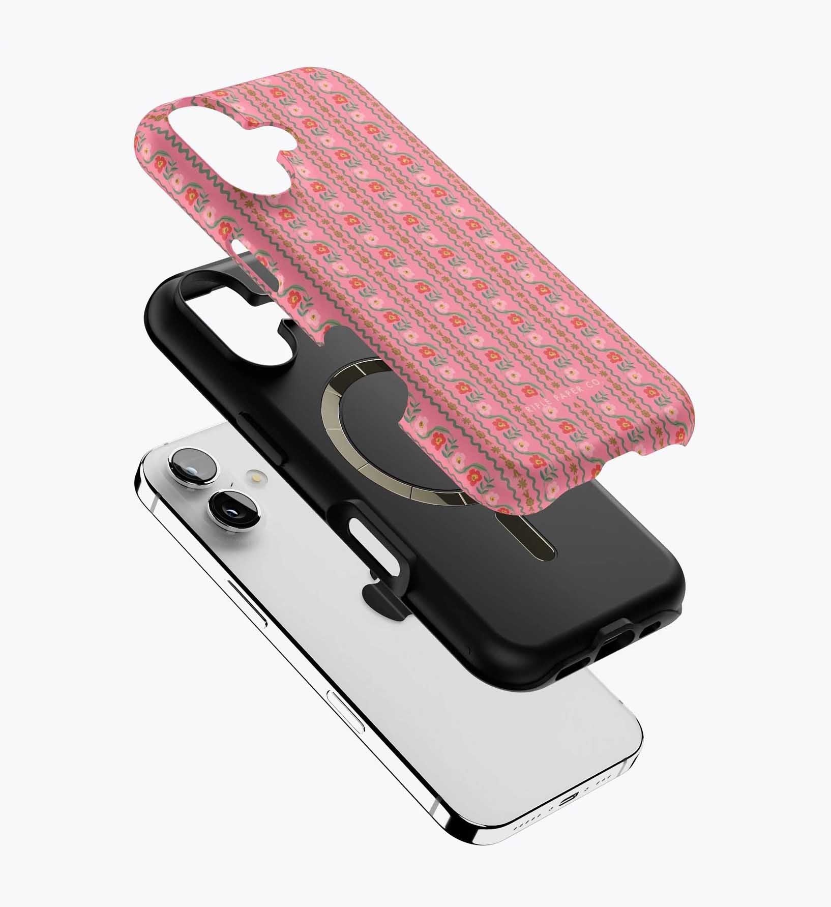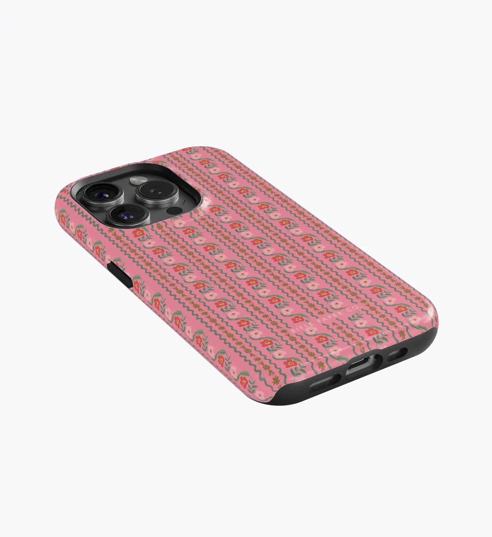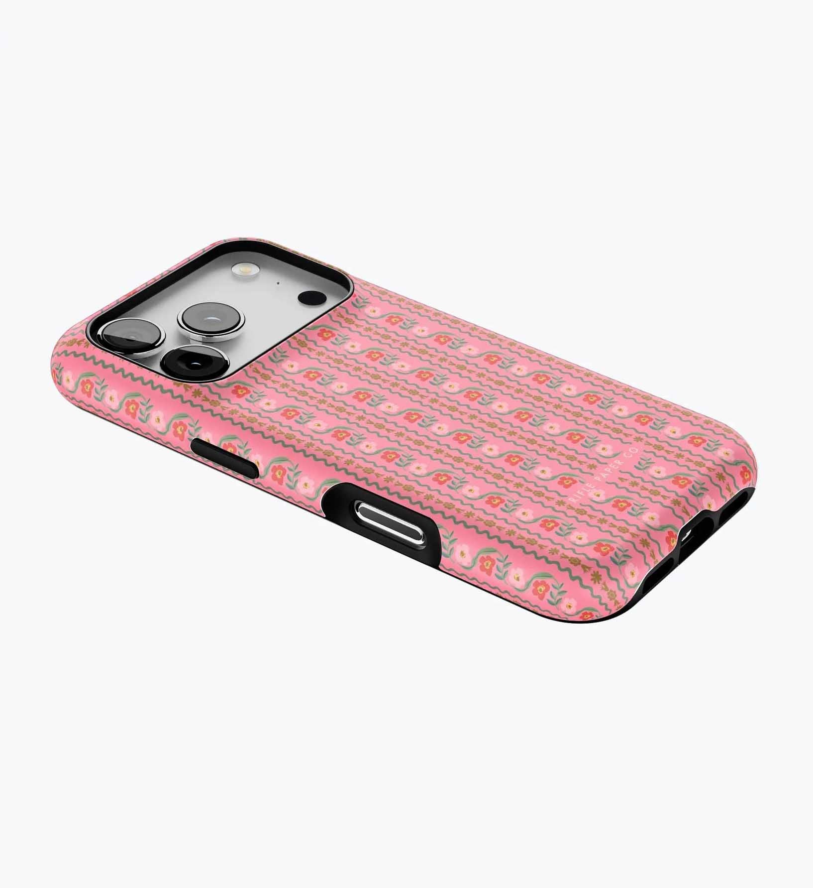 As a huge rifle paper co fan who has been buying their phone cases for 5+ years, I’m really disappointed with the design of these new cases. There is a black inner part of the case that contrasts terribly with the design and feels very cheap to me — like something I could have gotten for a 10th of the price on Amazon. It also results in a black outline on the front of the phone which I also don’t like. I am so bummed and will be returning. The quality of the case itself feels cheap and the pattern looks somewhat blurry/just printed on if that makes sense. So disappointed… this doesn’t live up to the quality of rifle paper co that I’m used to! I loved the print and was excited, but this will be going back :(
