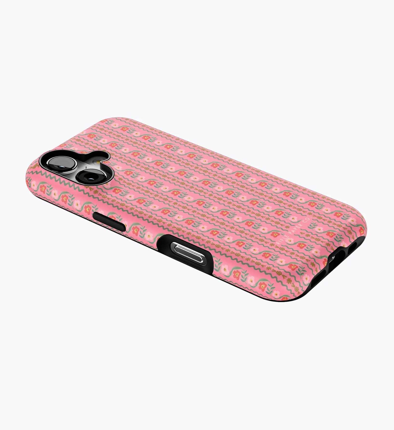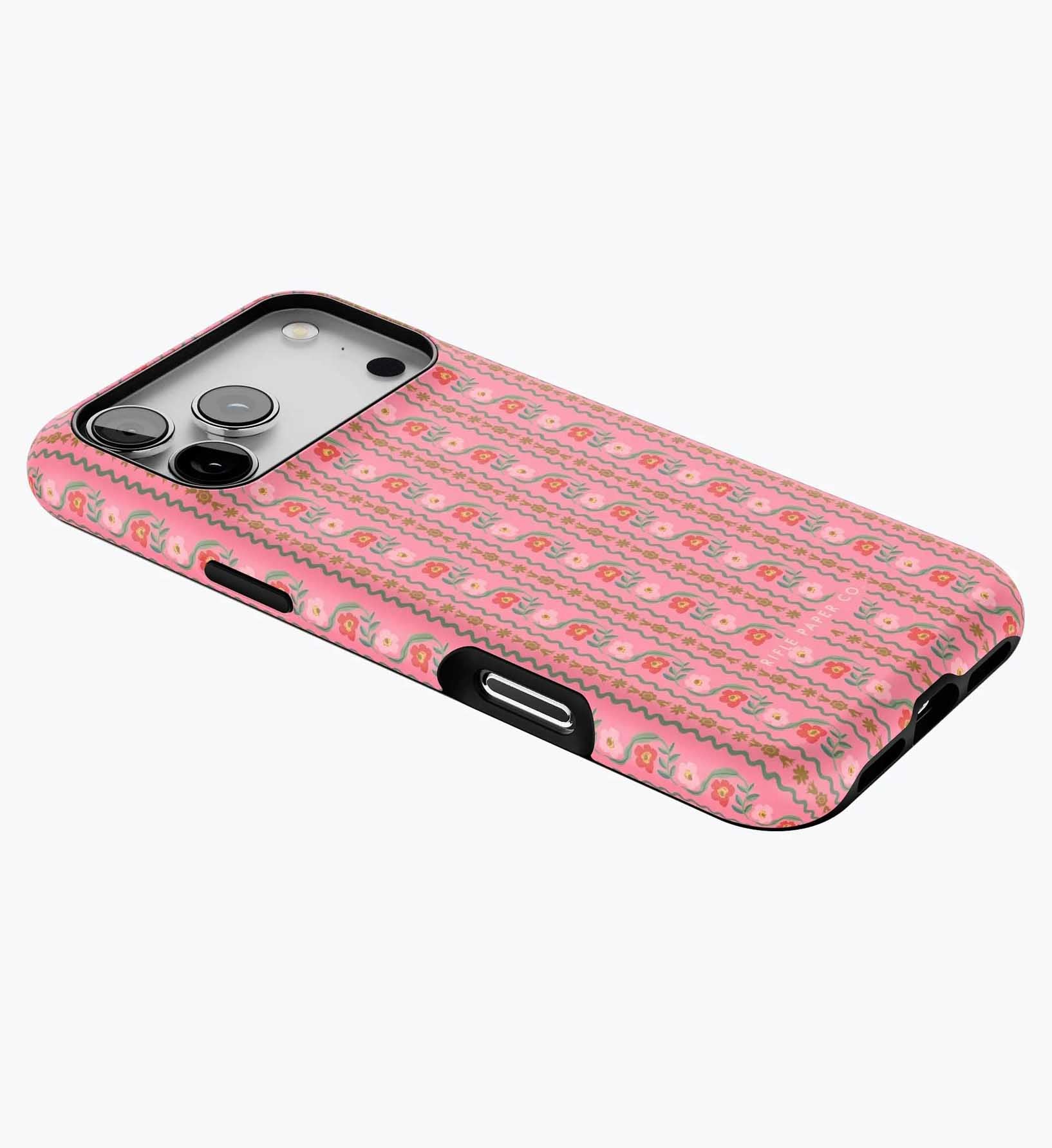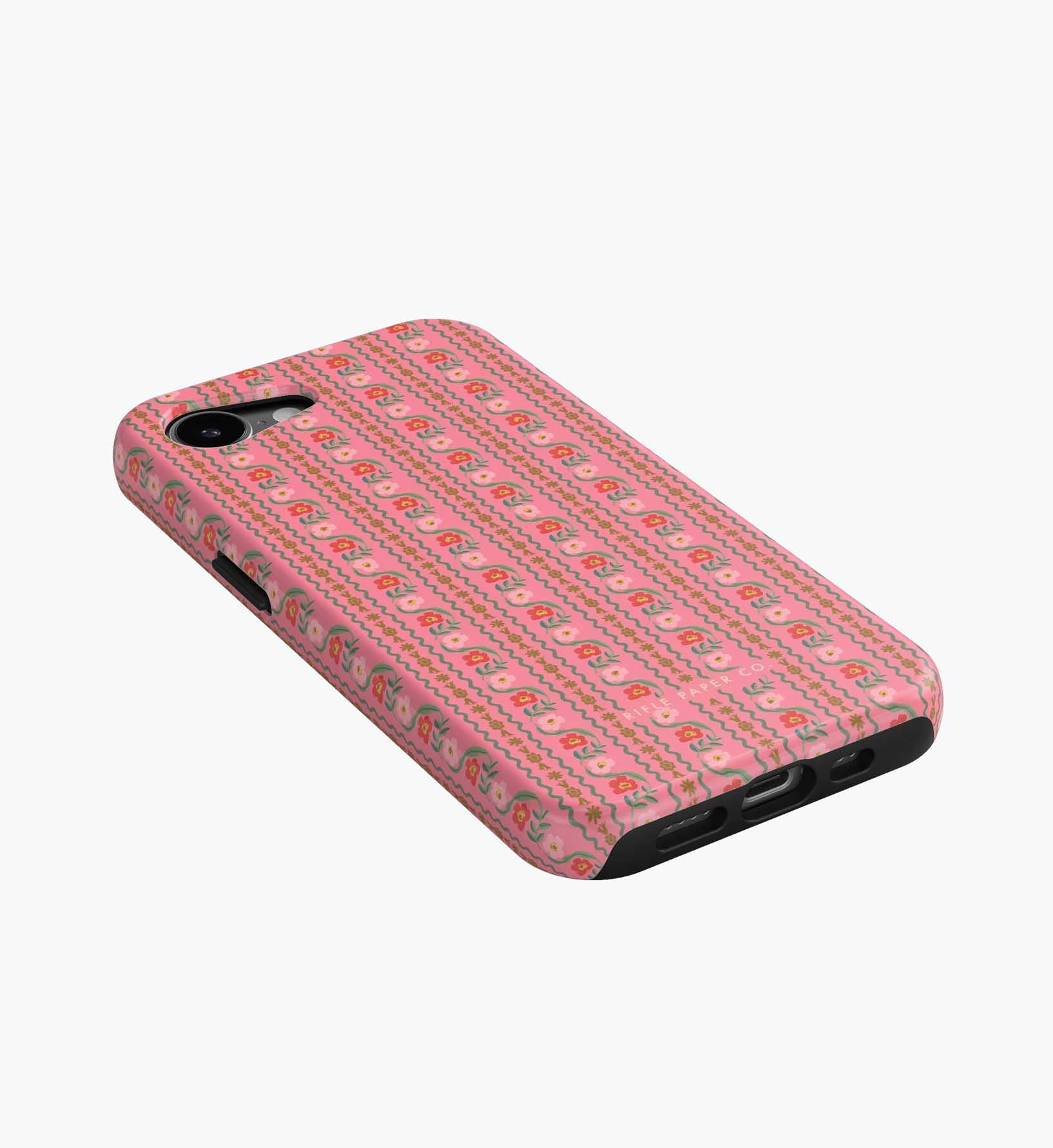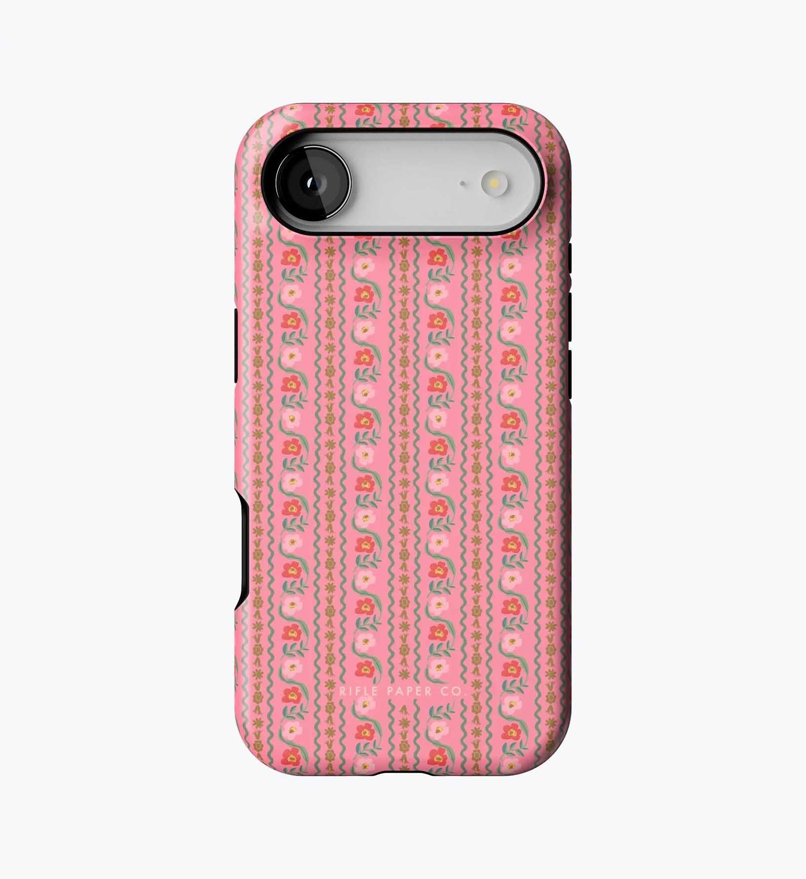 As a huge rifle paper co fan who has been buying their phone cases for 5+ years, I’m really disappointed with the design of these new cases. There is a black inner part of the case that contrasts terribly with the design and feels very cheap to me — like something I could have gotten for a 10th of the price on Amazon. It also results in a black outline on the front of the phone which I also don’t like. I am so bummed and will be returning. The quality of the case itself feels cheap and the pattern looks somewhat blurry/just printed on if that makes sense. So disappointed… this doesn’t live up to the quality of rifle paper co that I’m used to! I loved the print and was excited, but this will be going back :(