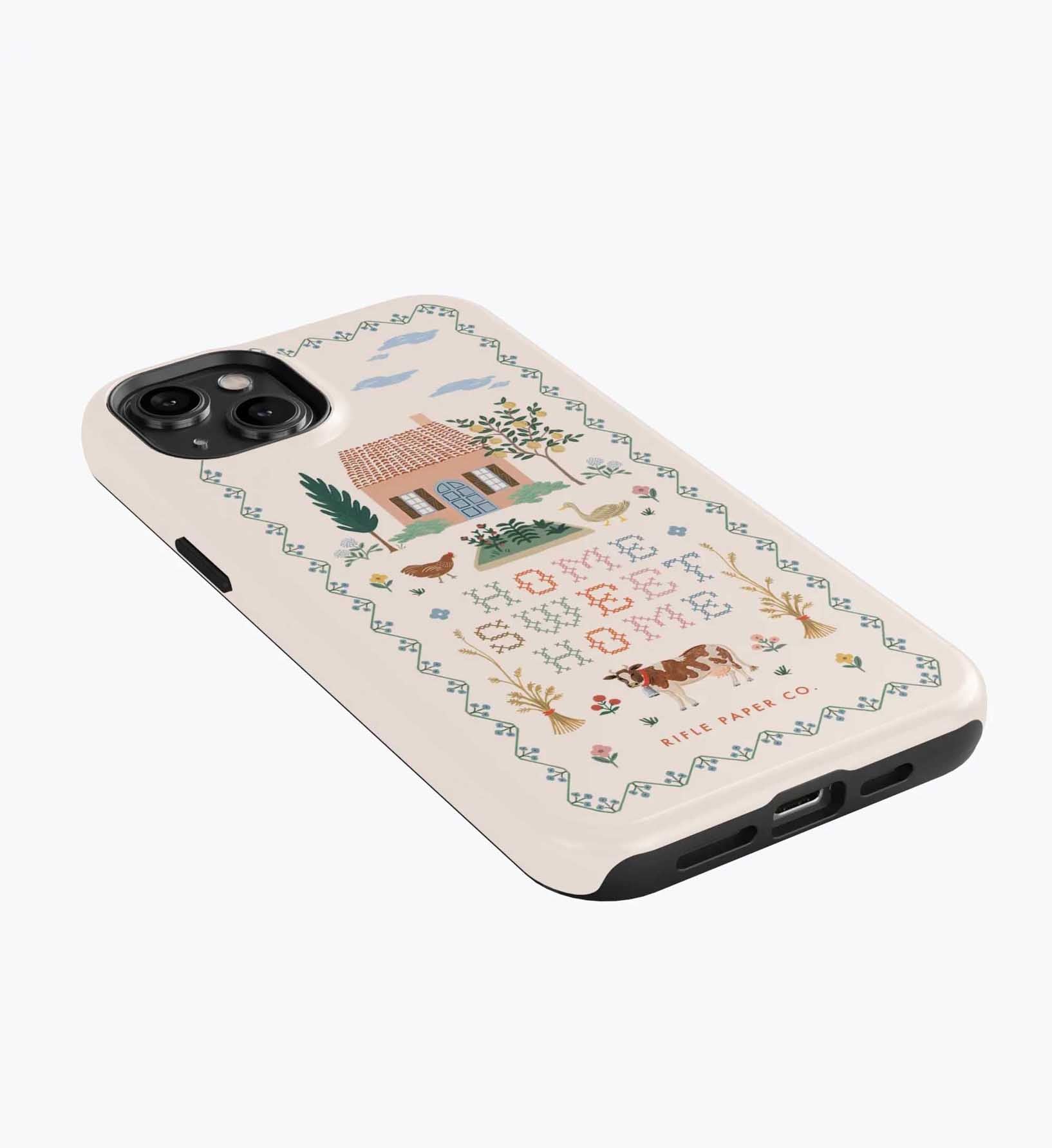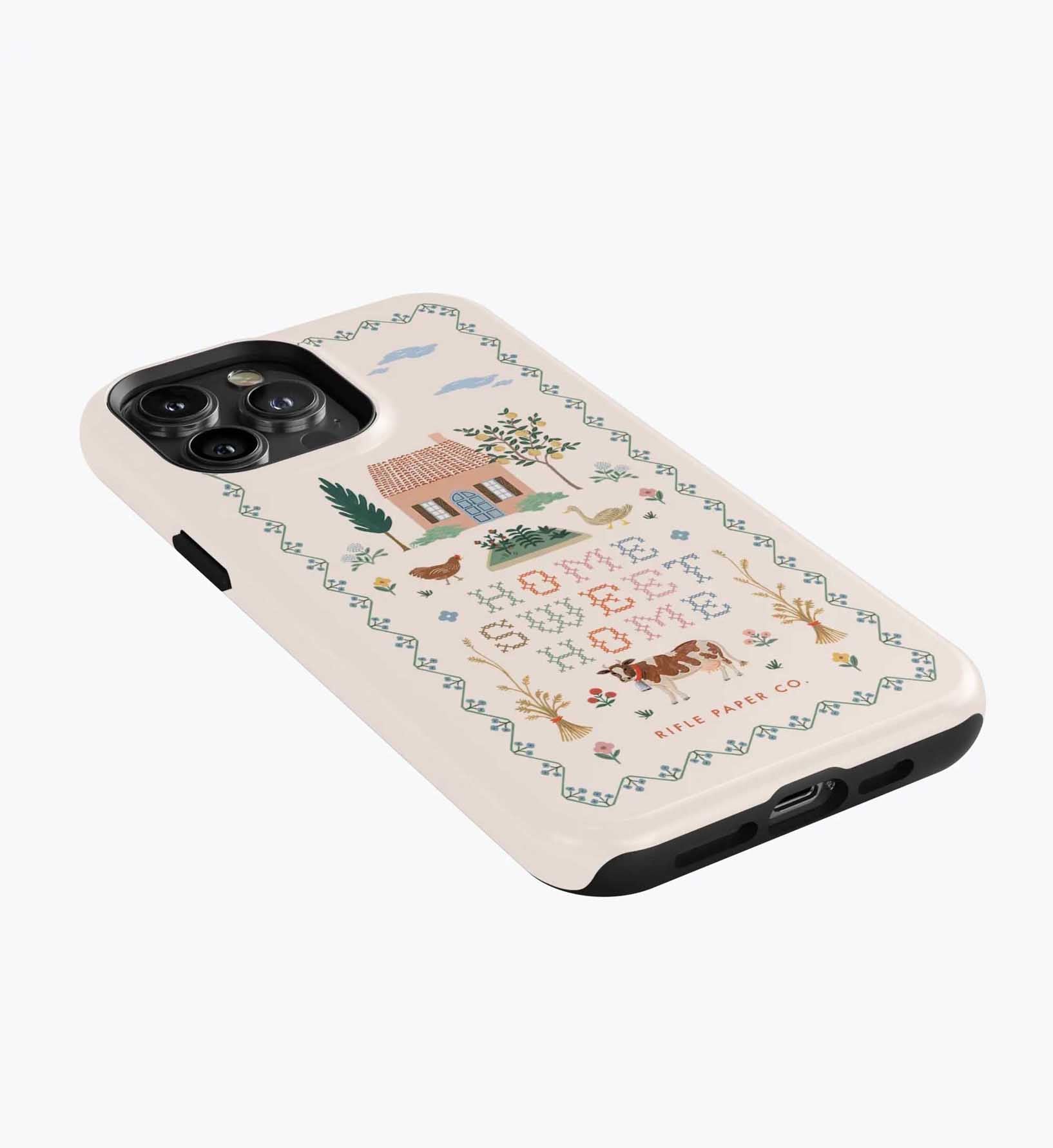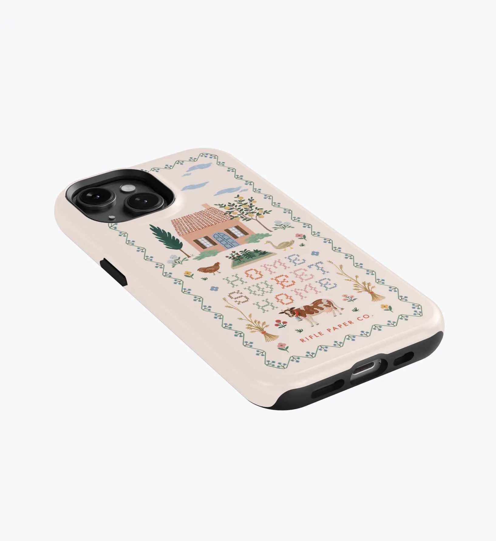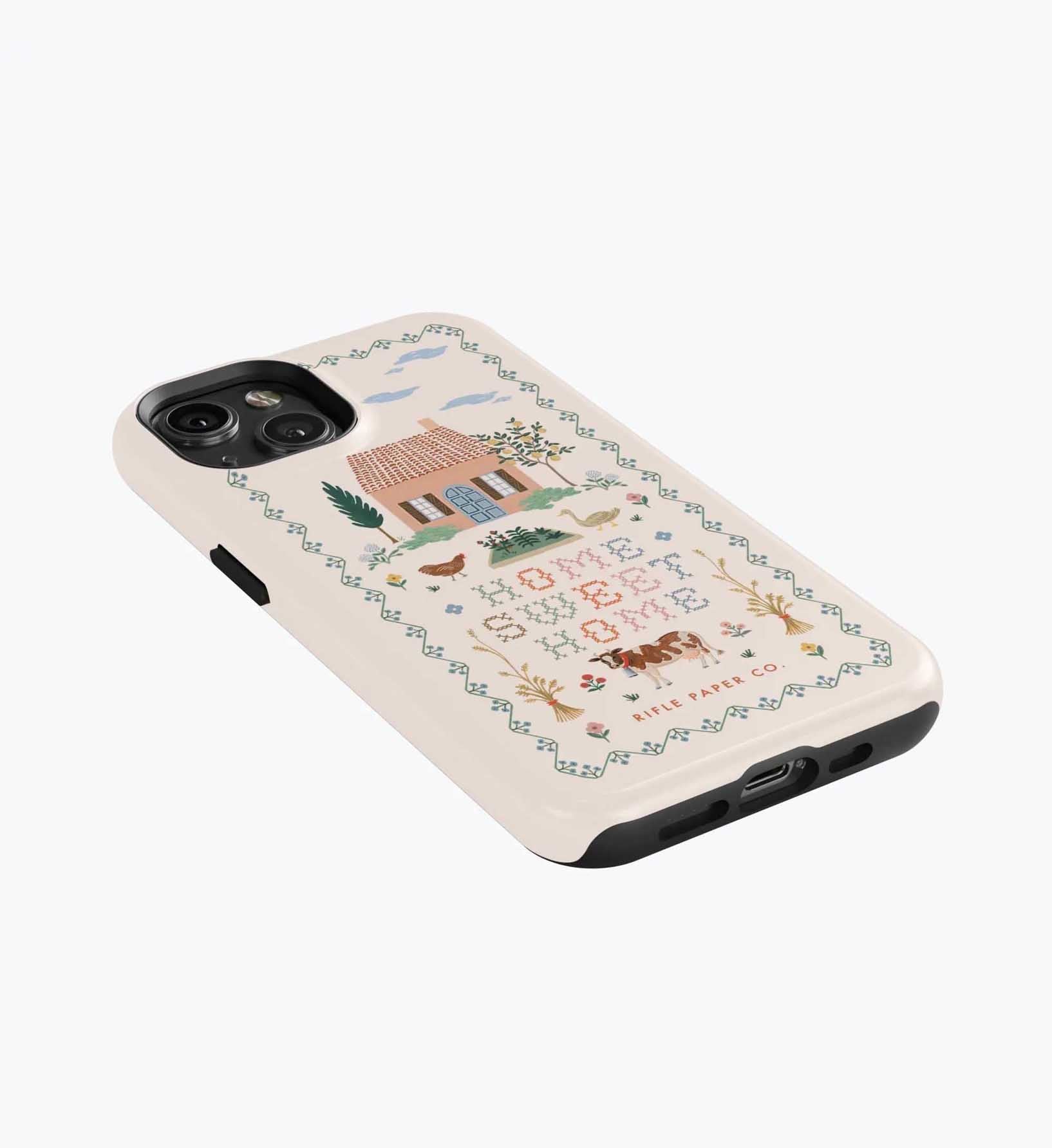 As a huge rifle paper co fan who has been buying their phone cases for 5+ years, I’m really disappointed with the design of these new cases. There is a black inner part of the case that contrasts terribly with the design and feels very cheap to me — like something I could have gotten for a 10th of the price on Amazon. It also results in a black outline on the front of the phone which I also don’t like. I am so bummed and will be returning. The quality of the case itself feels cheap and the pattern looks somewhat blurry/just printed on if that makes sense. So disappointed… this doesn’t live up to the quality of rifle paper co that I’m used to! I loved the print and was excited, but this will be going back :(