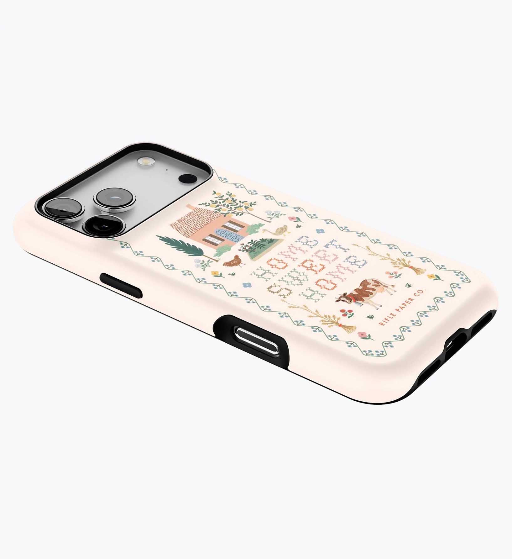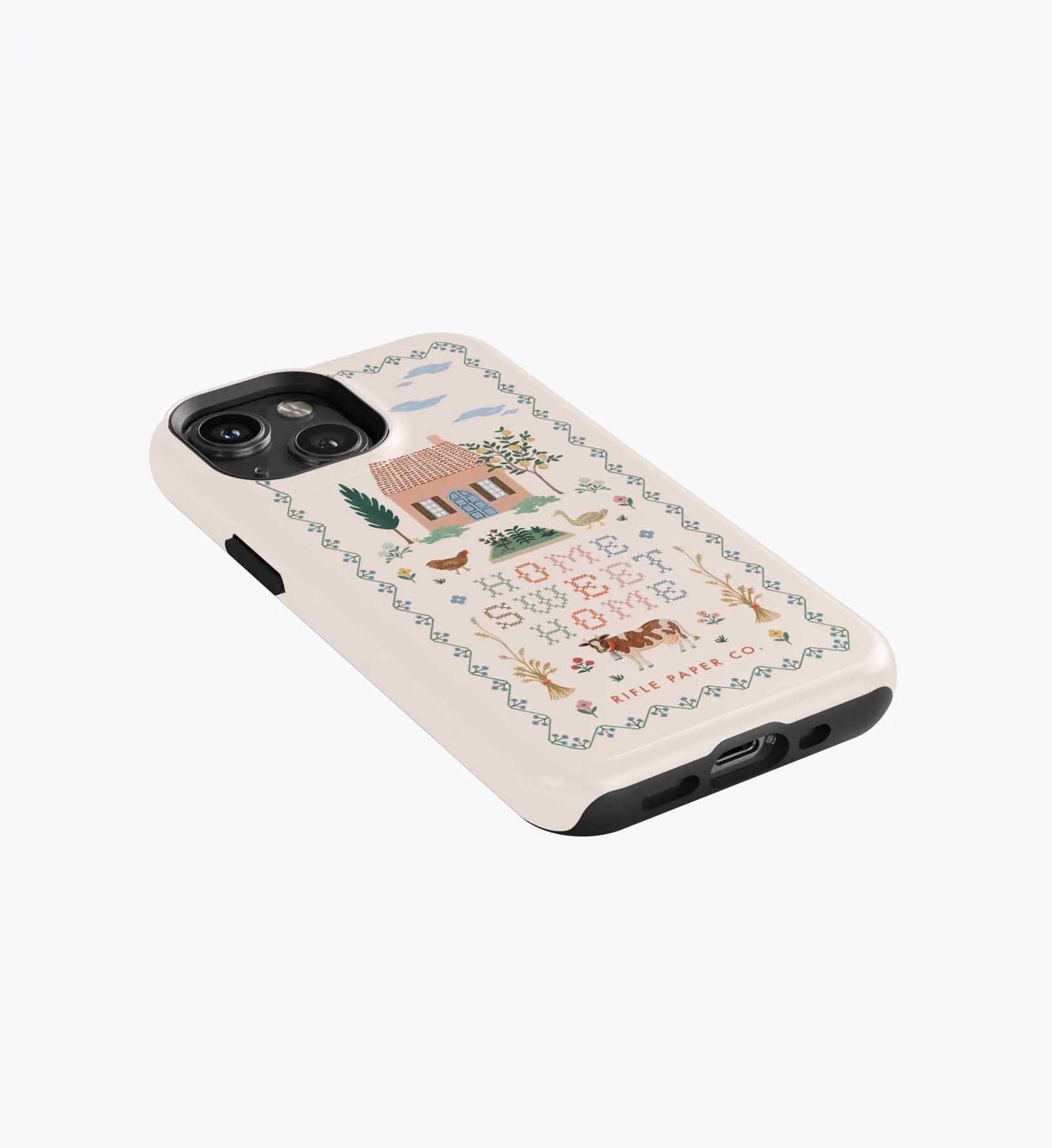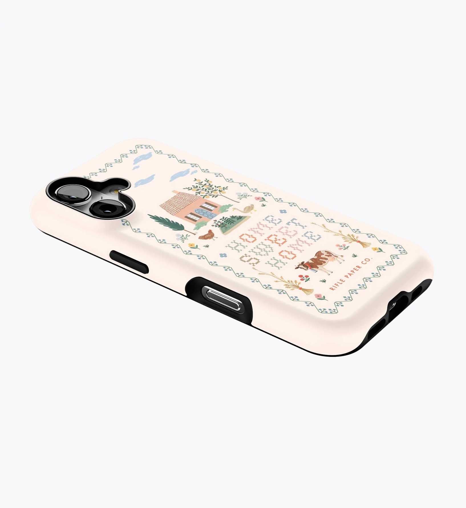As a huge rifle paper co fan who has been buying their phone cases for 5+ years, I’m really disappointed with the design of these new cases. There is a black inner part of the case that contrasts terribly with the design and feels very cheap to me — like something I could have gotten for a 10th of the price on Amazon. It also results in a black outline on the front of the phone which I also don’t like. I am so bummed and will be returning. The quality of the case itself feels cheap and the pattern looks somewhat blurry/just printed on if that makes sense. So disappointed… this doesn’t live up to the quality of rifle paper co that I’m used to! I loved the print and was excited, but this will be going back :(