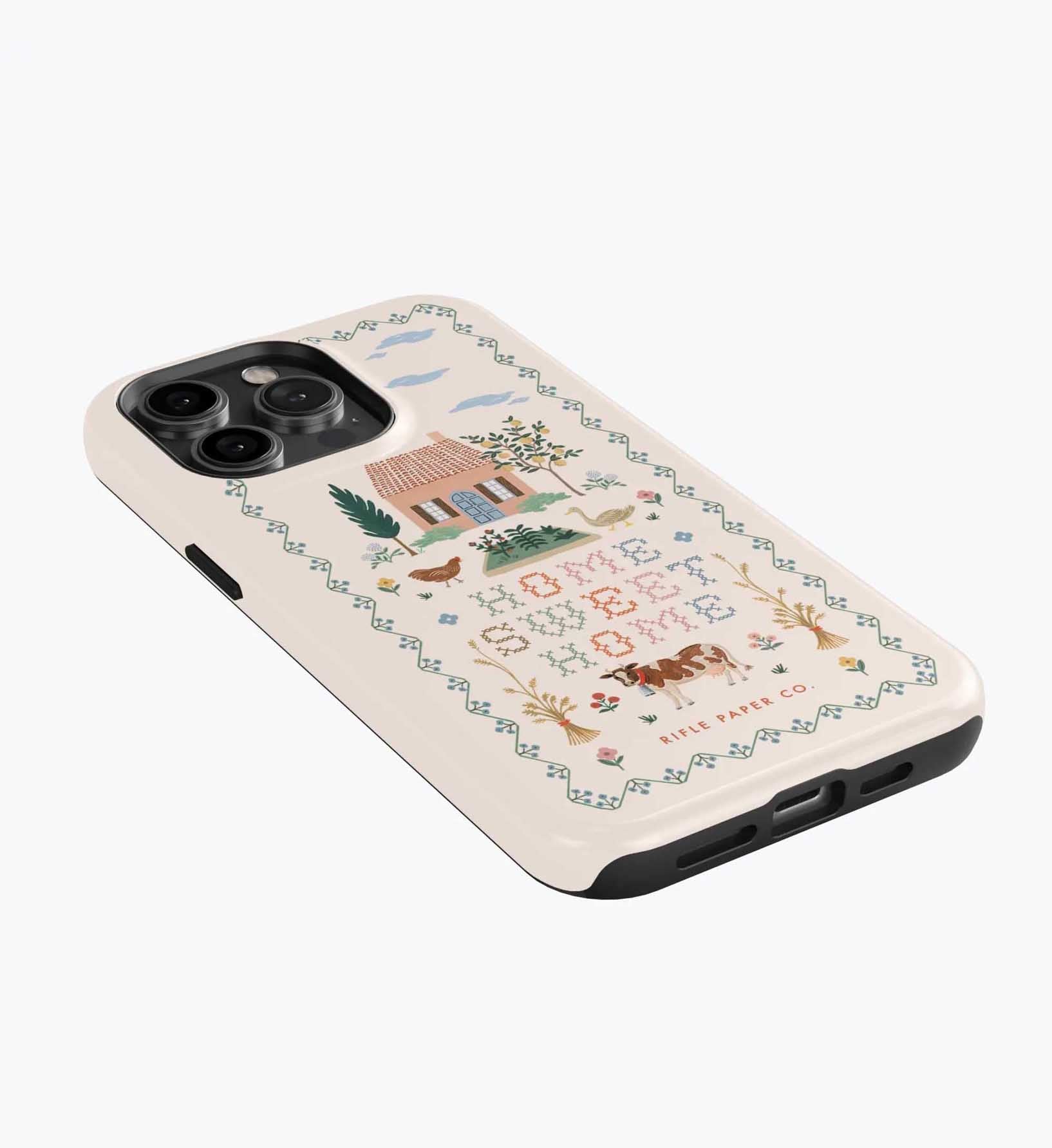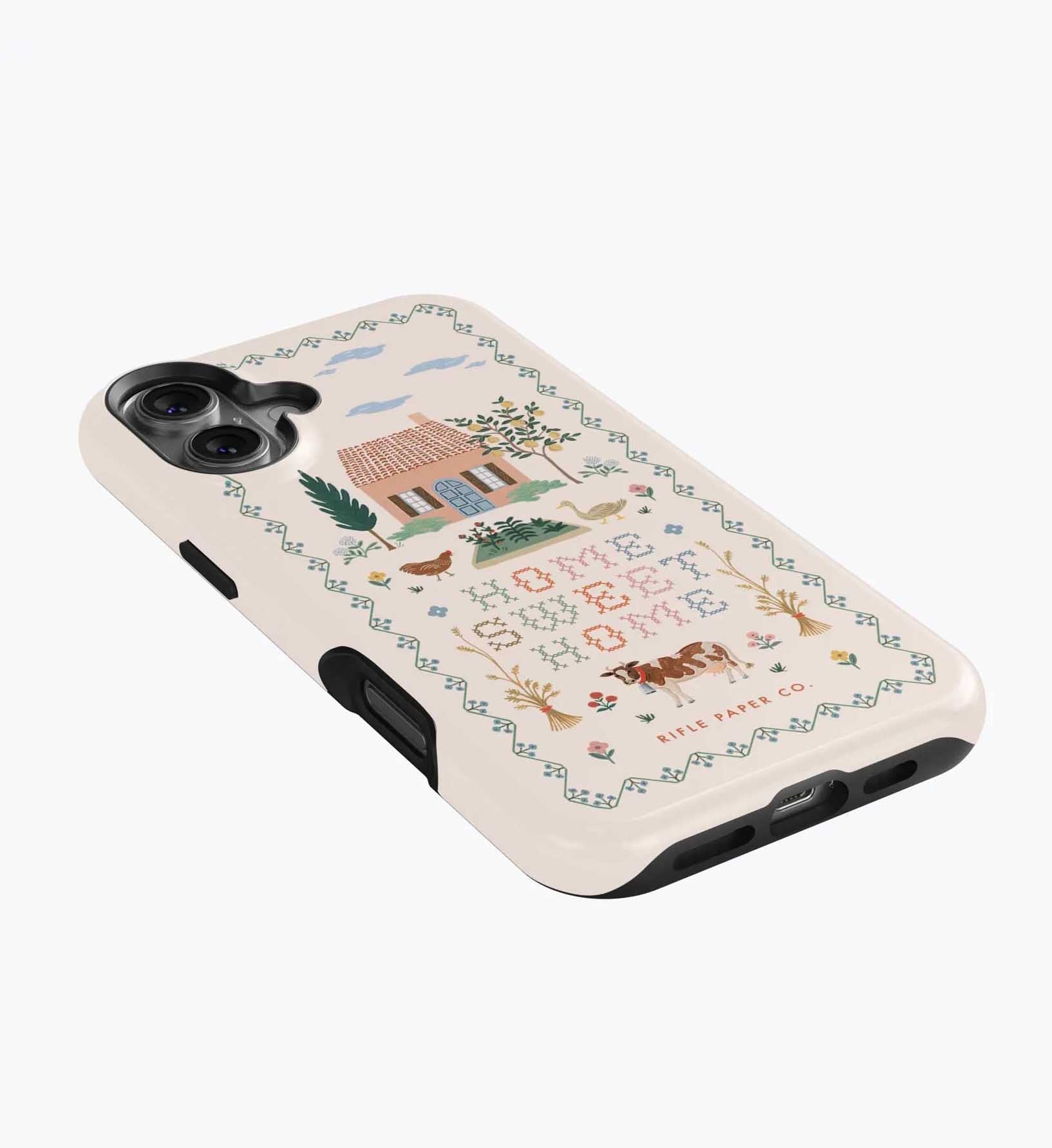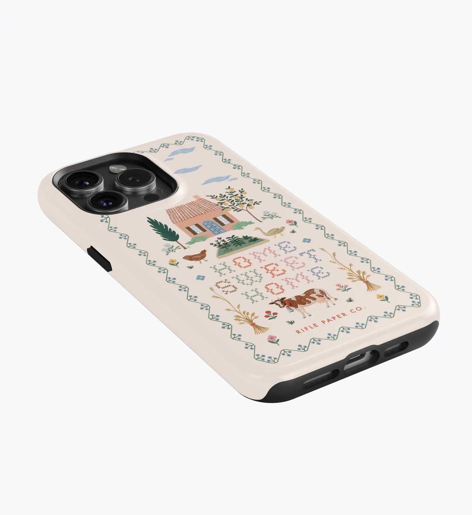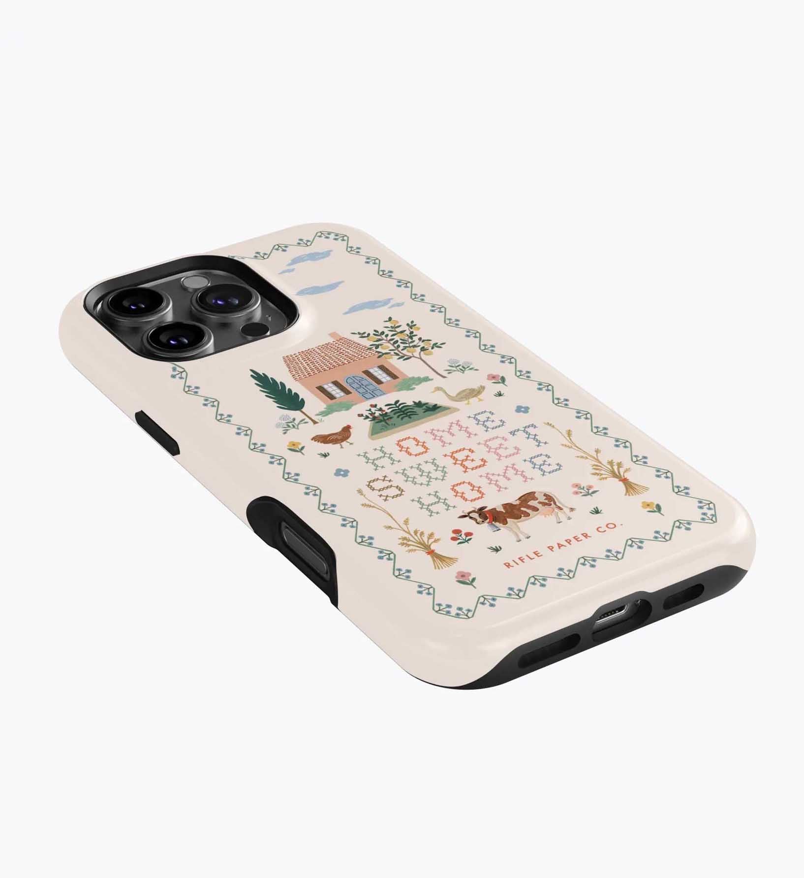 As a huge rifle paper co fan who has been buying their phone cases for 5+ years, I’m really disappointed with the design of these new cases. There is a black inner part of the case that contrasts terribly with the design and feels very cheap to me — like something I could have gotten for a 10th of the price on Amazon. It also results in a black outline on the front of the phone which I also don’t like. I am so bummed and will be returning. The quality of the case itself feels cheap and the pattern looks somewhat blurry/just printed on if that makes sense. So disappointed… this doesn’t live up to the quality of rifle paper co that I’m used to! I loved the print and was excited, but this will be going back :(