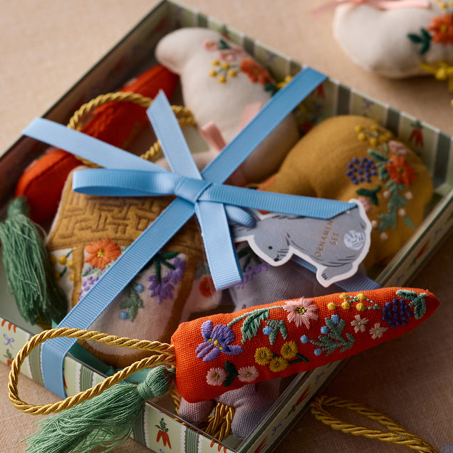 The Easter collection is back: Our favorite accents for brunch tables, Easter baskets, and more, featuring sweet Spring Farm illustrations.