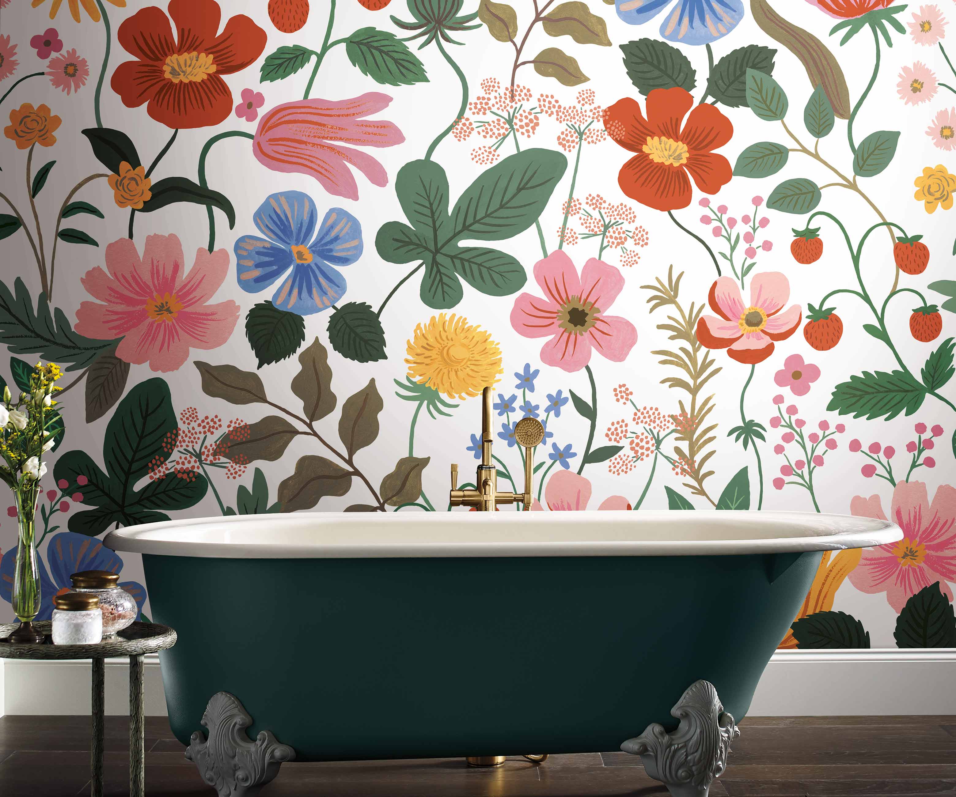 Our collection includes traditional wallpaper, grasscloths, murals, and Premium Peel & Stick wallcoverings, featuring our signature floral designs and color palette.