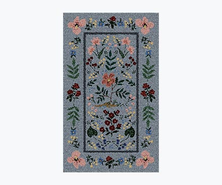 I wanted a rug that would coordinate with many pieces of art in a powder room as well as wallpaper also from Rifle Paper Co., purchased but not as yet installed. This rug fit the bill. It needed to be understated as the wallpaper and art are much bolder. I am happy with this rug. It has charm and blends with the stronger elements in the small room. Rifle Paper Co. is such a great source for charm. 3 rooms in my home feature their products.