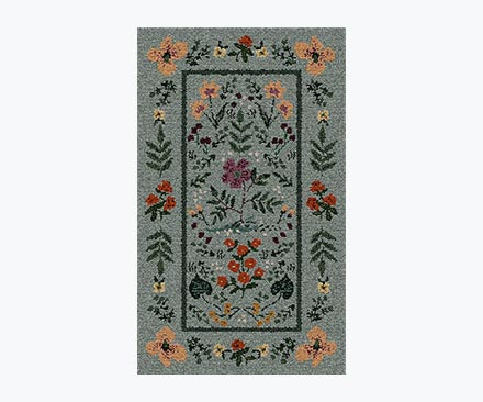 I wanted a rug that would coordinate with many pieces of art in a powder room as well as wallpaper also from Rifle Paper Co., purchased but not as yet installed. This rug fit the bill. It needed to be understated as the wallpaper and art are much bolder. I am happy with this rug. It has charm and blends with the stronger elements in the small room. Rifle Paper Co. is such a great source for charm. 3 rooms in my home feature their products.